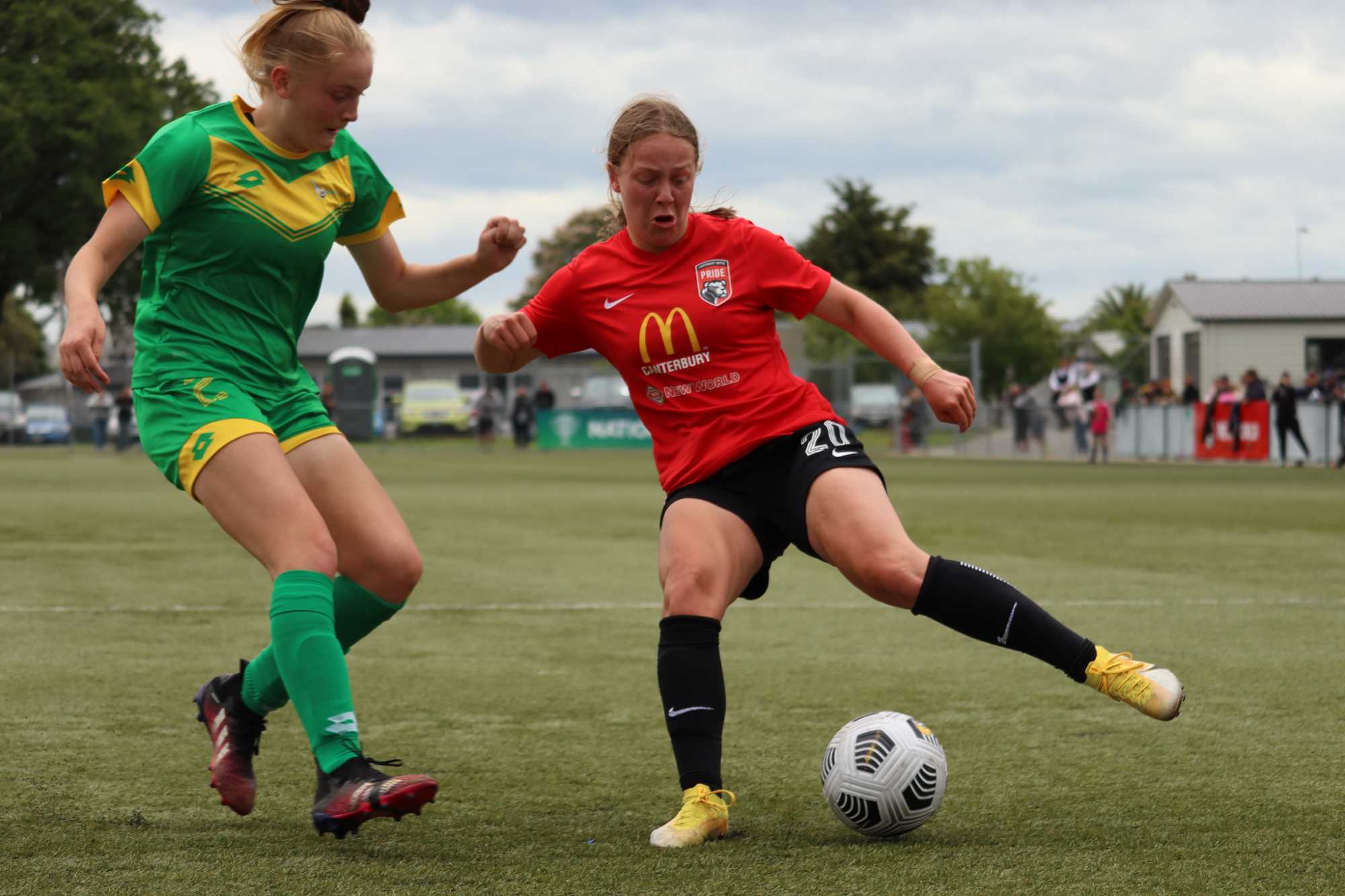 Round three of the South Central Series saw your Canterbury United Pride host Central Football at the home of footy, English Park. Our ladies found themselves in an unfamiliar spot going into this fixture, having taken losses at the hands of both Capital Football and Southern United. However, the early Sunday morning cloud parted way for a burst of beautiful sunshine, and the Christchurch public gathered in the Steve Sumner Stand to rally on their home team. On the other hand, Central Football boasted a young, well-drilled side who was also keen to pick up their first points in the South Central Series. From the get-go, the Pride girls showed every ounce of class that they are so capable of. Having pinned the visitors in the attacking third, the chances began to flow. Pass after pass, shot after shot; the Pride kept asking questions of the Central defence. If it wasn’t for an impressive first half keeping display from Brooke Bennett, the Pride could have easily found themselves with a handful of goals within the first half-hour. Eventually, we broke through the shackles and grabbed first blood via captain Rebecca Lake’s header for her second goal of the season.